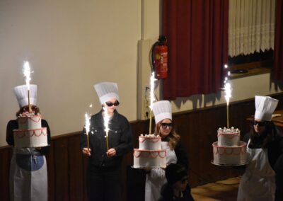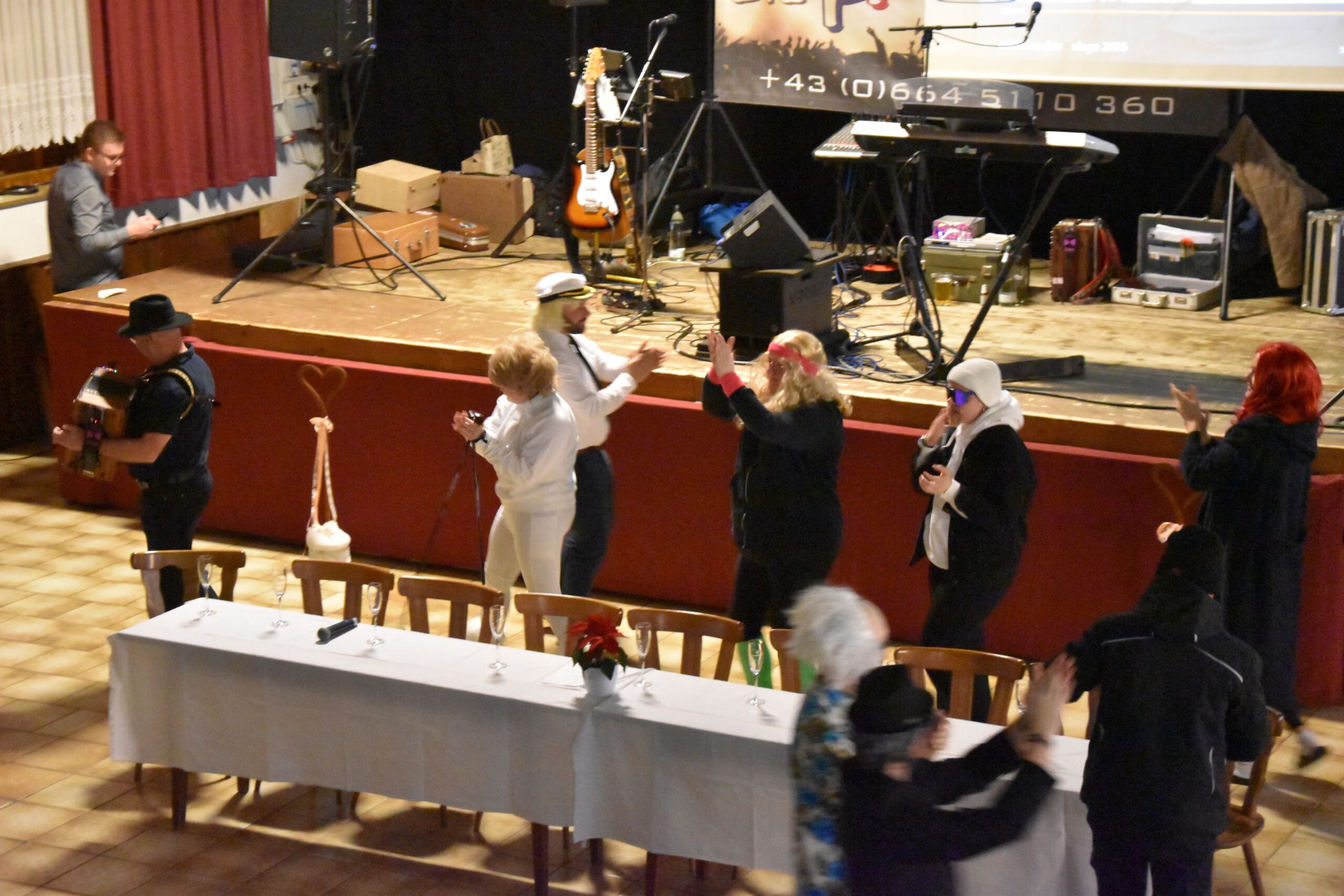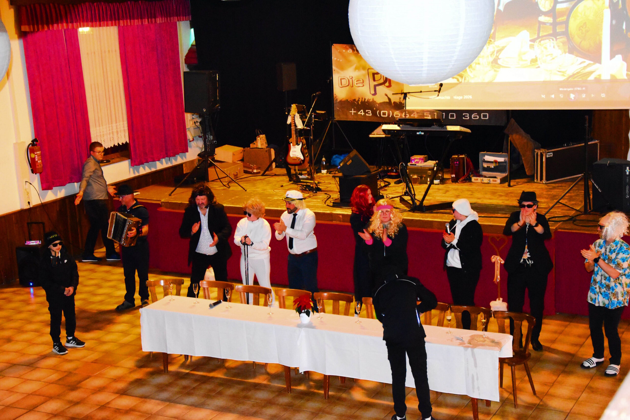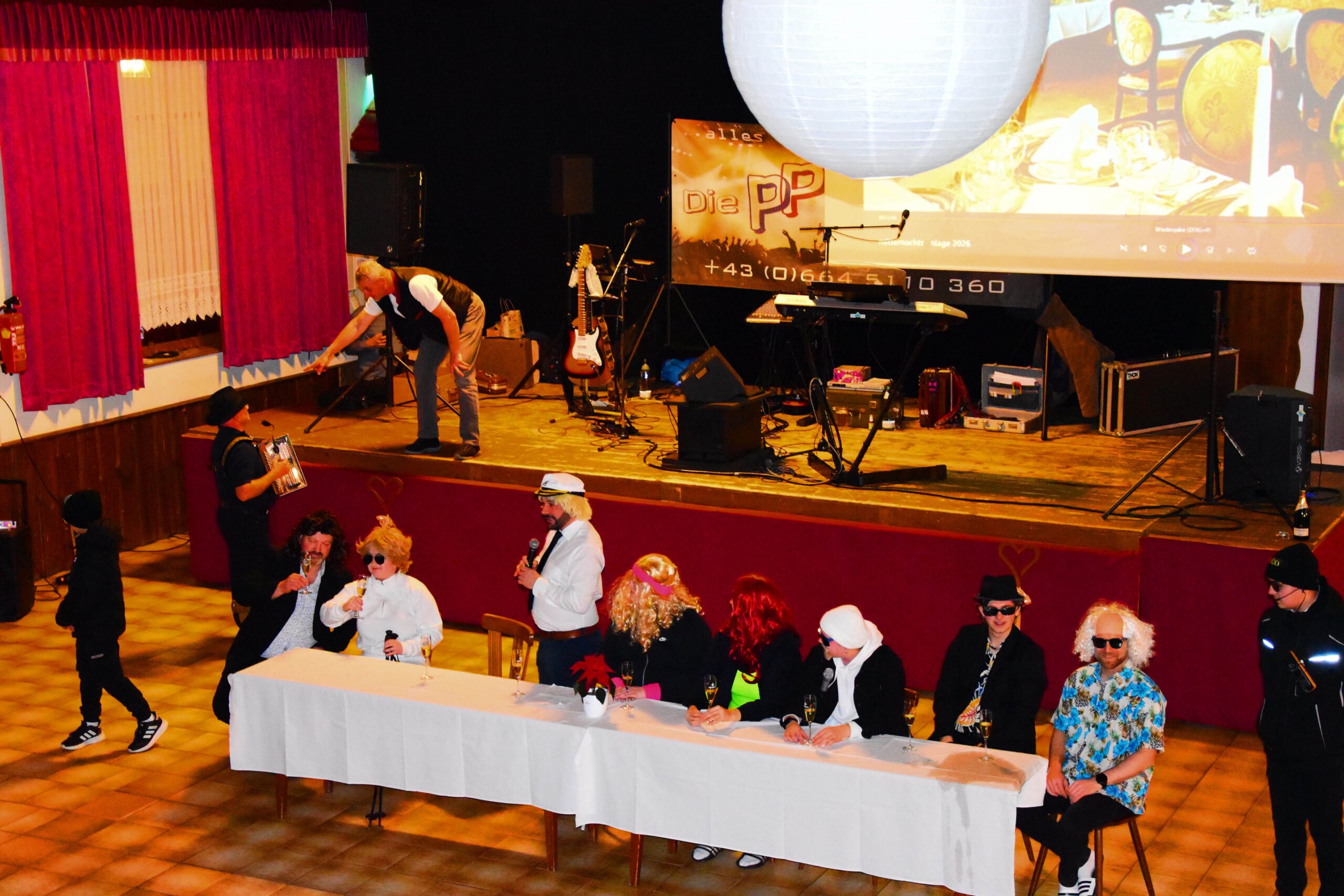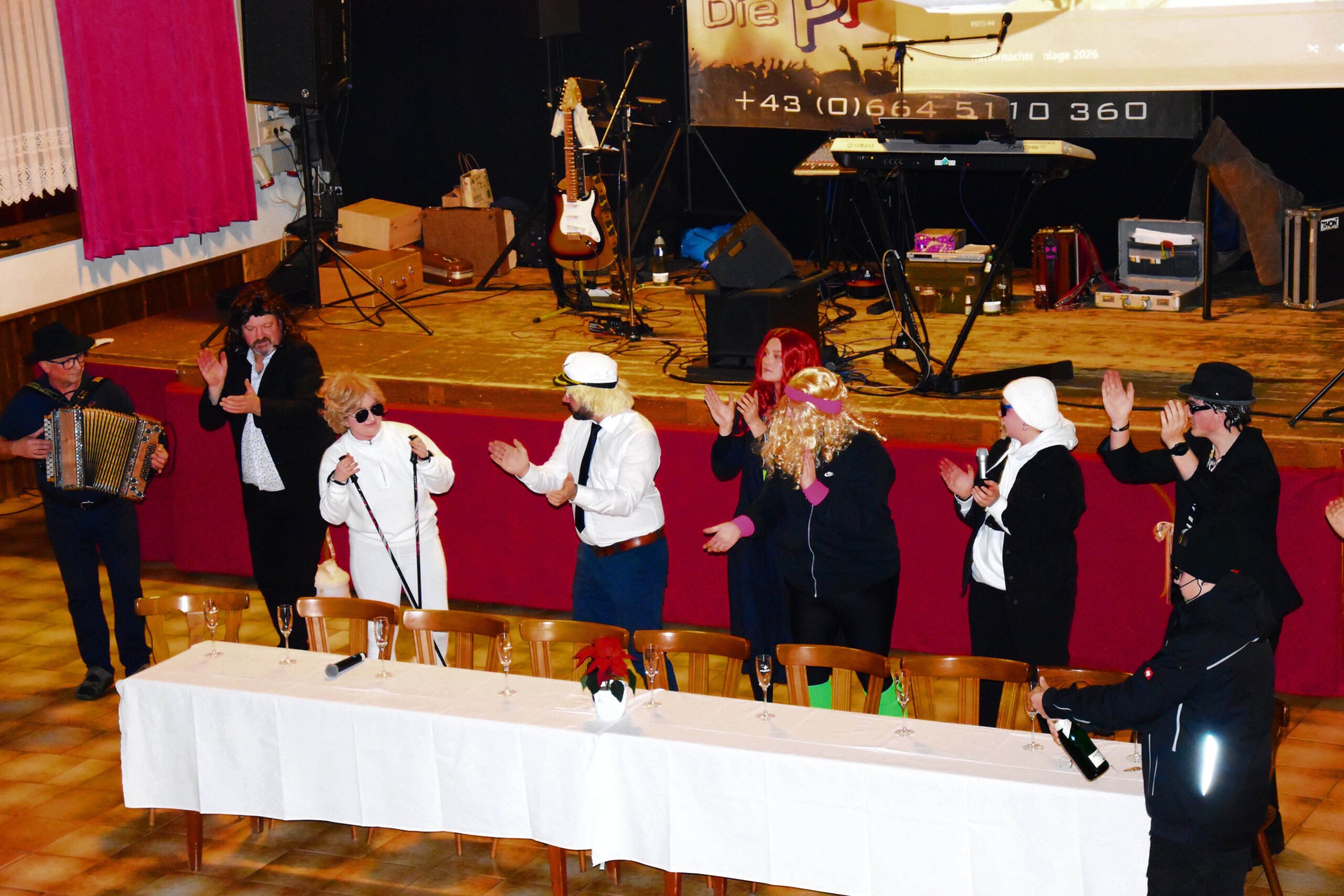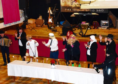 Ein besonderer Höhepunkt des Abends war die Mitternachtseinlage. Nach dem großen Erfolg im vorletzten Jahr gab es diesmal eine Fortsetzung: Florian Silbereisen reiste zu den Mardetschläger Silberhills, um seine Freunde abzuholen und gemeinsam ein festliches Gala-Abschlussdinner im Gasthaus Pammer abzuhalten. Mit viel Humor, schauspielerischem Talent und musikalischem Können begeisterten unsere Musikerinnen und Musiker das Publikum.